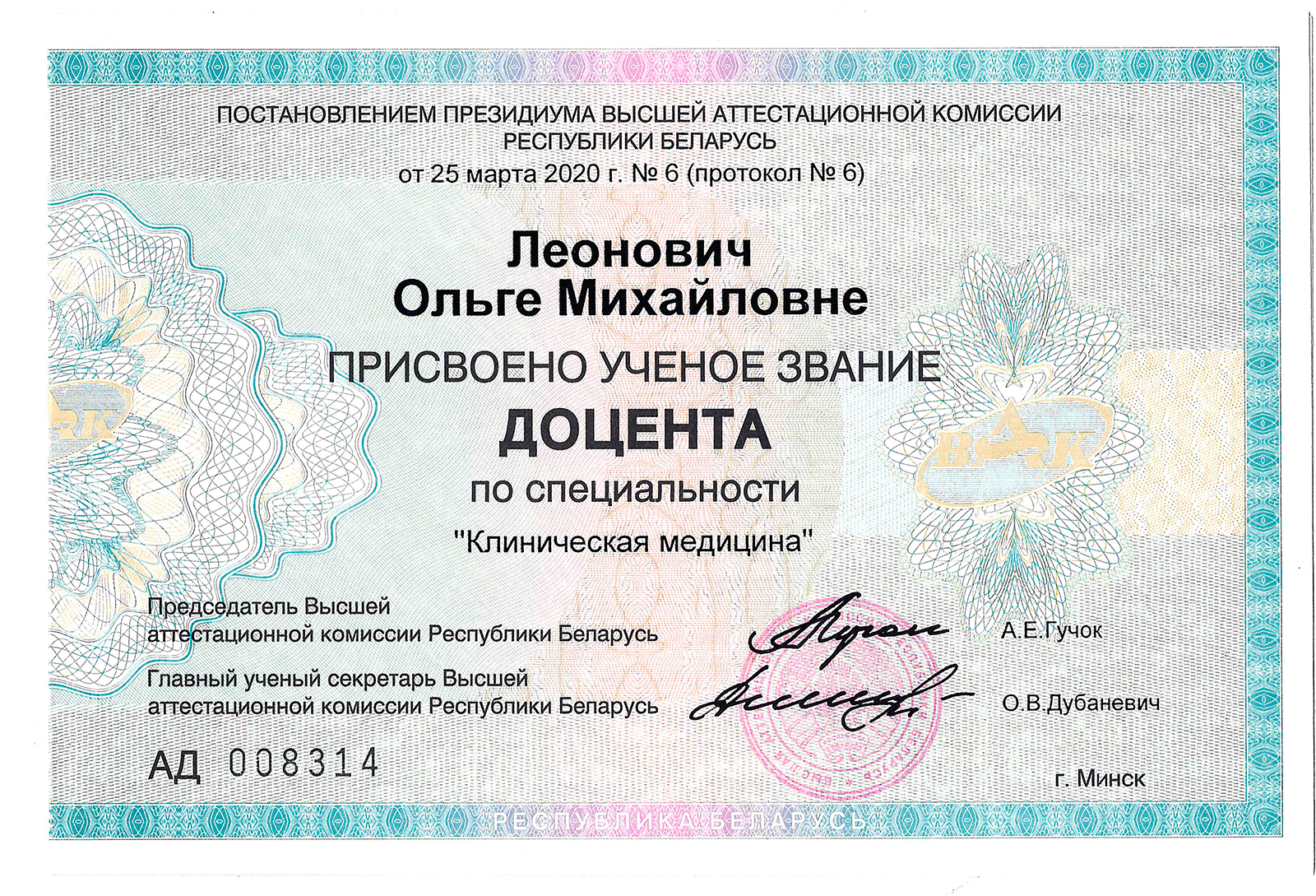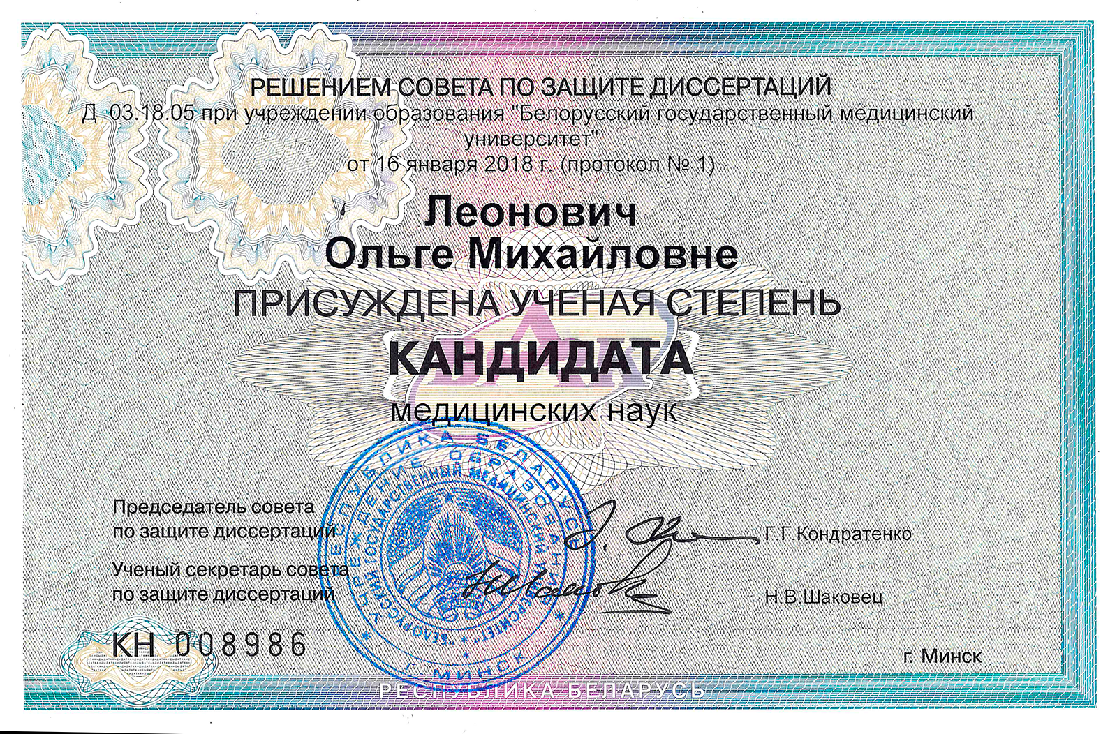 - 2013 г — аспирантура УО «Белорусский государственный медицинский университет»;