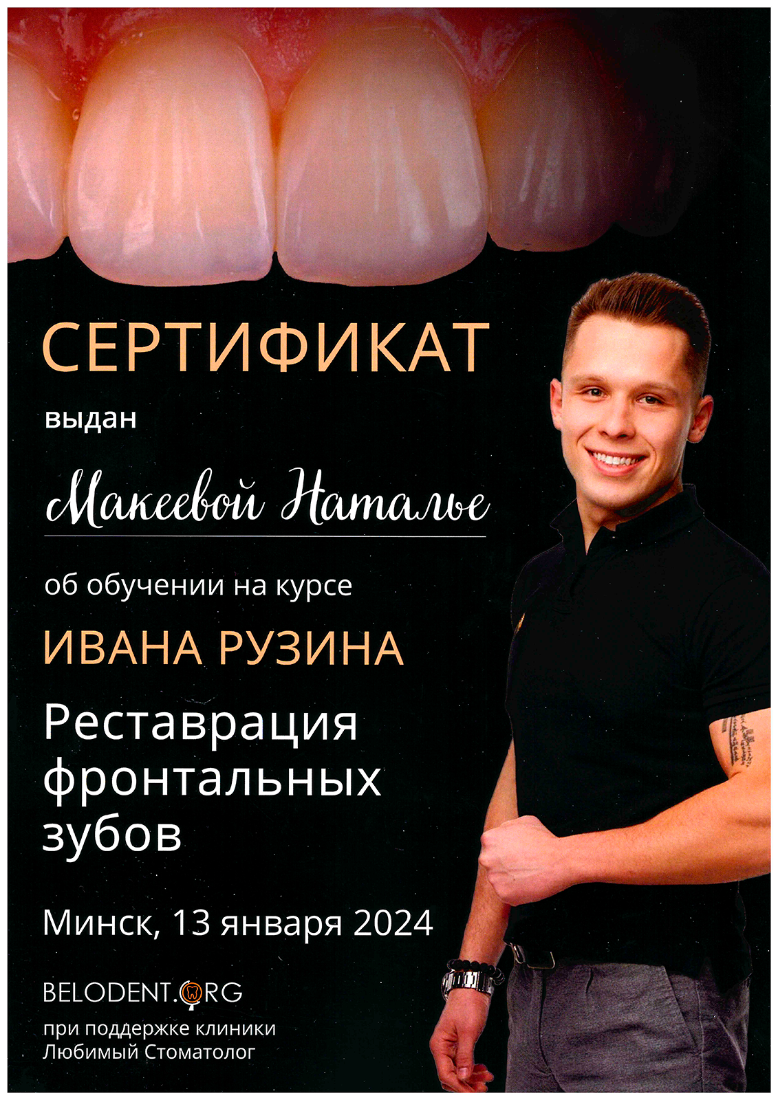2014 г. — курс Ивана Вьючнова «Повторное эндодонтическое лечение. Консервативный и хирургический подходы»;