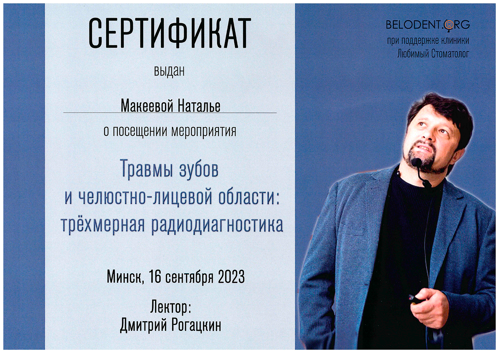 2016 г. — курс Дмитрия Рогацкина «Лучевая диагностика в амбулаторной практике врача-стоматолога»;