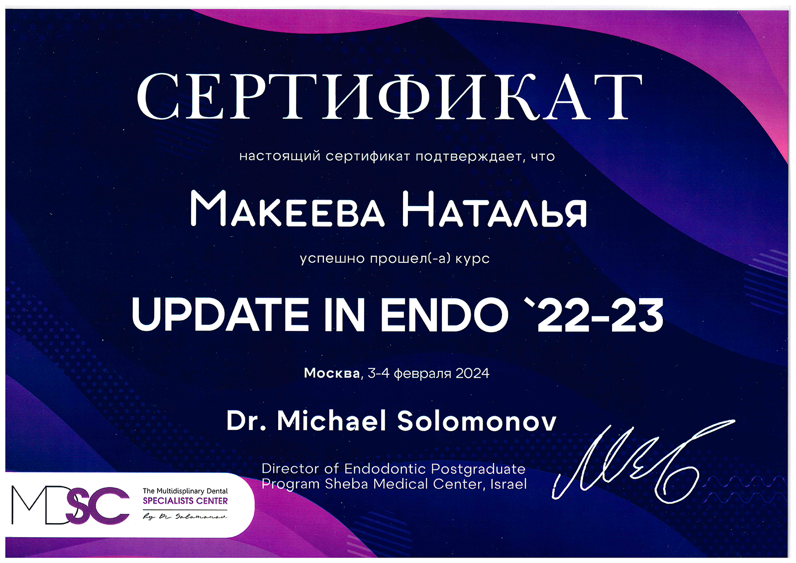 2019 г. — курс Михаила Соломонова «Практические нюансы каждодневной эндодонтии. Часть II»;