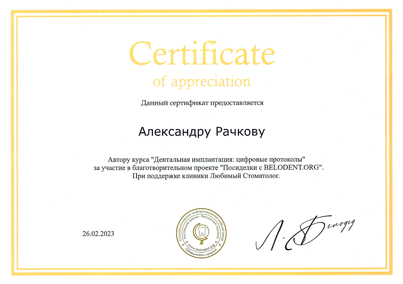 2016 г. – «Основы дентальной имплантации», ГУО «БелМАПО»;