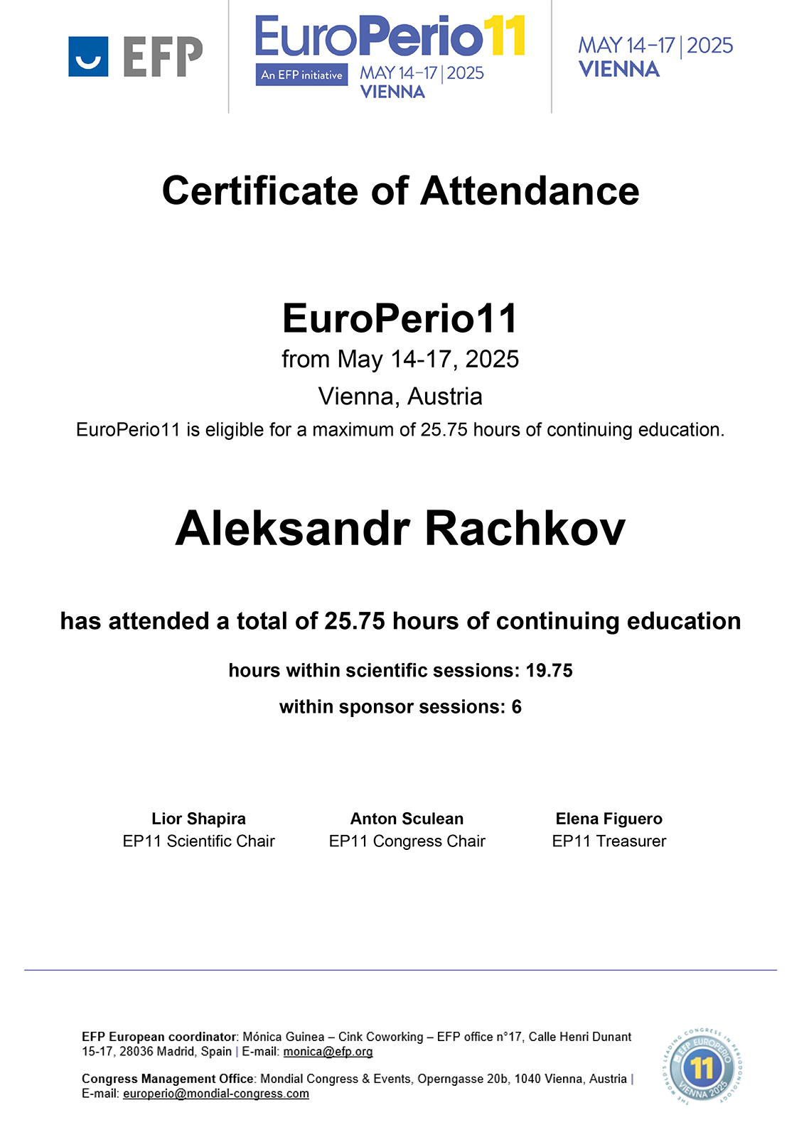 2020 г. – IV Международный конгресс по дентальной имплантологии, ГУО «БелМАПО»;
