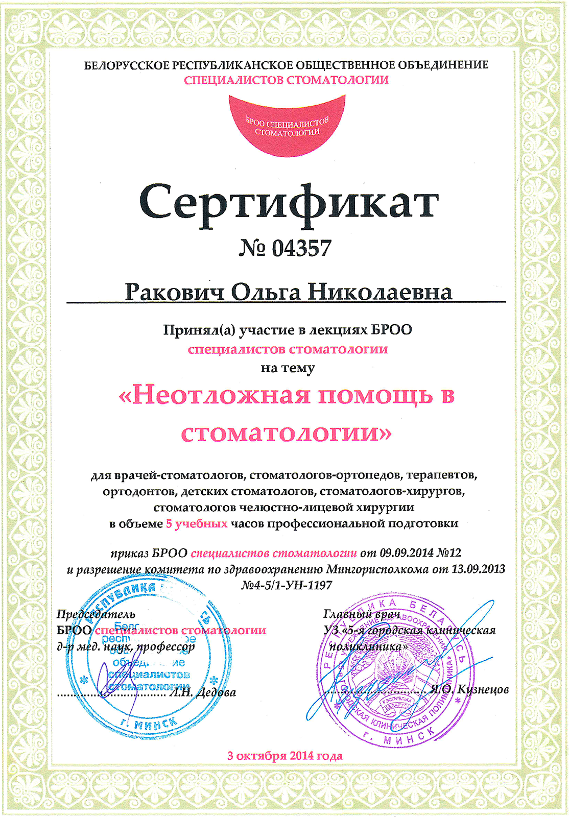 2015 г. – периохирургия, Беларусь.