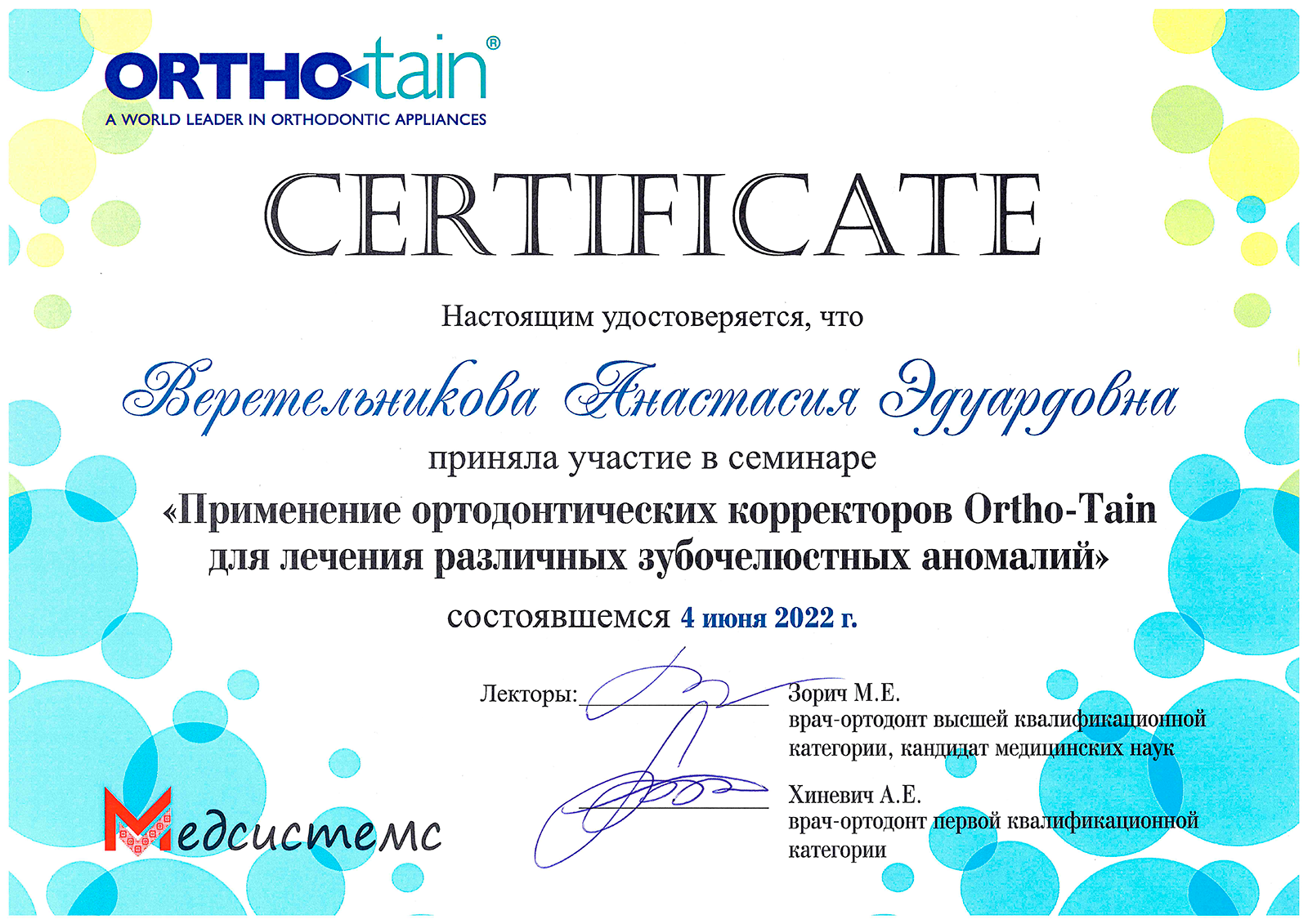 В ортодонтической практике Анастасия Эдуардовна применяет несъемную и съемную ортодонтическую аппаратуру. Владеет навыками работы со всеми видами брекет-систем.