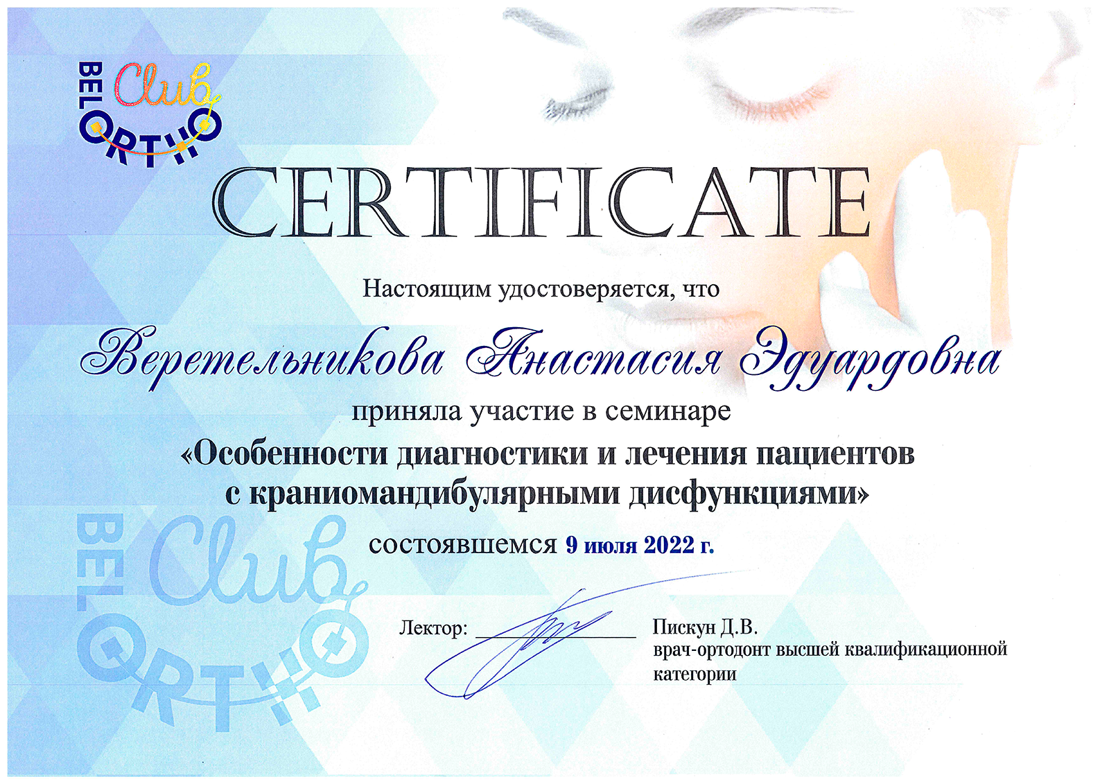 Анастасия Эдуардовна регулярно повышает квалификацию на базе Государственного учреждения образования «Белорусская медицинская академия последипломного образования» (БелМАПО).